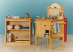 Mit unseren Spielständern lassen sich verschiedene Verwendungsmöglichkeiten gestalten. Auch die Kinderküche mit Herd und Spüle lässt keine Wünsche offen.